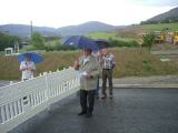 Trotz eines heftigen Gewitterschauers konnten der stellvertretende Bügermeister Werner Menke und die beiden Ortsvorsteher Josef Röttger und Rudolf Hillebrand die neue Gemeindeverbindungsstraße "Bigge - Helmeringhausen" mit Brücke über die Ortsumgehung Olsberg für den Verkehr freigeben.