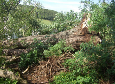 Viele Jahrzehnte, schätzungsweise 200 Jahre, prägte sie das Bild des Oberdorfes. Heute, am 1. August 2007 kurz nach 17.00 Uhr stürtzte sie einfach um. Die Kastanie auf dem Grundstück des Josefsheim ist nicht mehr. Dem ersten Eindruck nach ist das Wurzelwerk abgestorben und gab ihr somit keinen Halt mehr.