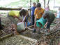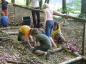 Mit großem Elan wurden die einzelnen Felder von Laub und anderem Unrat gereinigt, der Boden aufgelockert, Hackspäne als Untergrund eingebracht und dann mit verschiedenen Naturmaterialien des Waldes wieder bestückt.