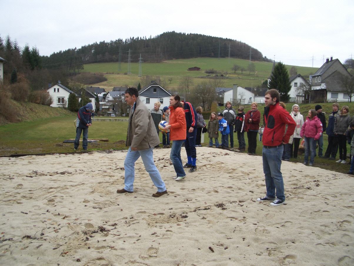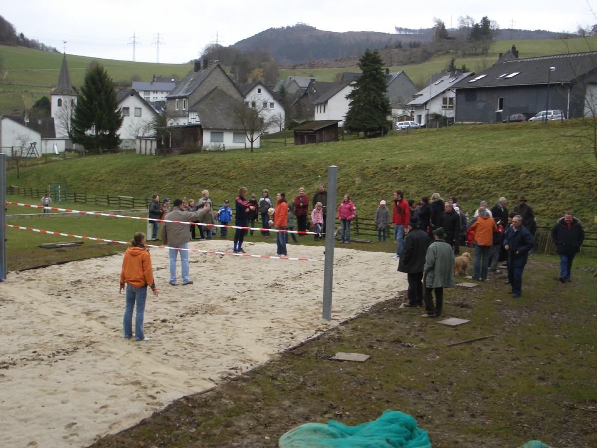 Ortsvorsteher Hillebrand beendete seine Eröffnungsrede mit einer Einladung an alle sportlich Aktiven. Der neue Beachvolleyballplatz soll ein Ort der Begegnung werden. „Dies ist ein öffentlicher Platz. Gäste sind in Helmeringhausen jederzeit willkommen.“