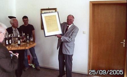 Mit einer Urkunde, auf der die Verdienste des ehemaligen Ortsvorstehers festgehalten sind, verabschiedeten die Helmeringhauser Vereine Paul Henke in den politischen Ruhestand.