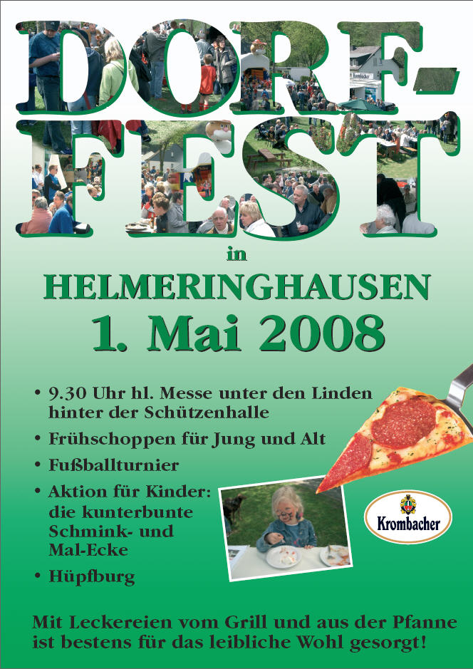 Seit vielen Jahren erfreut sich das von unserer Schützenbruderschaft ausgerichtete Dorffest an Christi Himmelfahrt bei immer mehr Wanderern und Vätern großer Beliebtheit. Dieses Jahr fällt die Veranstaltung zusammen mit dem 1. Mai-Feiertag. Ganz sicher wandert daher noch der ein oder andere mehr mit dem Bollerwagen nach Helmeringhausen, um mit vielen Einheimischen und Gästen rund um die Schützenhalle den 1. Mai zu feiern. Bei hoffentlich gutem Wetter bildet um 9.30 Uhr die hl. Messe unter den Schützenlinden den Auftakt. Direkt im Anschluss wird das Fest mit einem Frühschoppen fortgesetzt.