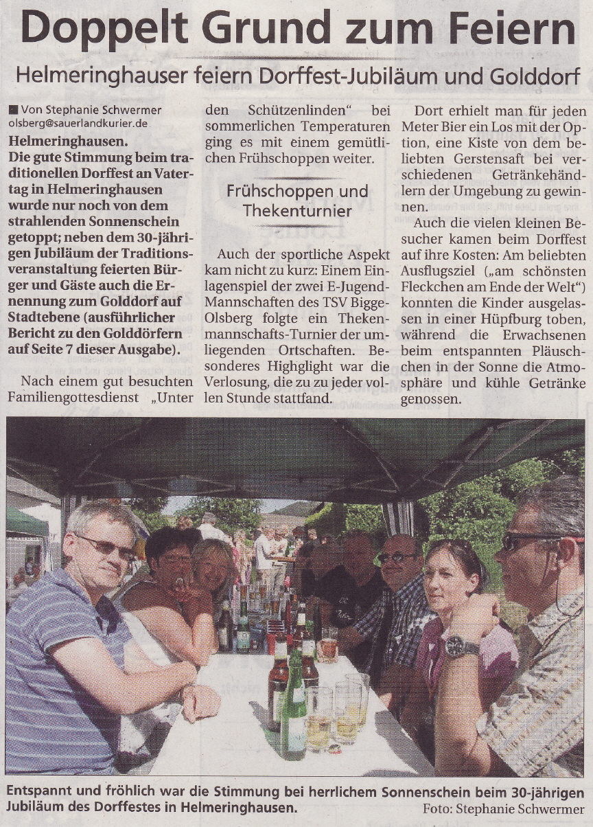 Beim Kreiswettbewerb "Unser Dorf hat Zukunft" belegt Helmeringhausen bei den Dörfern unter 700 Einwohnern einen hervorragenden 2. Platz! Dieser Lohn für die in der Vergangenheit geleistete Arbeit zeigt, dass wir auf einem richtigen Weg sind und ist Motivation für weitere Aufgaben.
