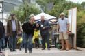Abbildung: Probesitzen auf den neuen Bänken am Vosspfad -