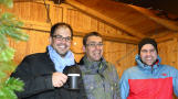Abbildung: Die beiden Projektleiter - mit einem Luftbild und der geplanten Lifttrasse und einem Foto der Schirmbar