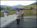 Trotz eines heftigen Gewitterschauers konnten der stellvertretende Bügermeister Werner Menke und die beiden Ortsvorsteher Josef Röttger und Rudolf Hillebrand die neue Gemeindeverbindungsstraße "Bigge - Helmeringhausen" mit Brücke über die Ortsumgehung Olsberg für den Verkehr freigeben. |