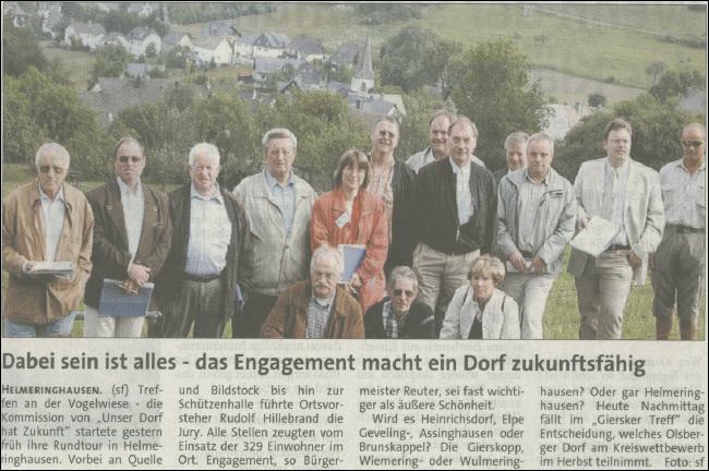 Beim Dorfwettbewerb "Unser Dorf hat Zukunft" belegt Helmeringhausen den dritten Platz bei den Dörfern bis 700 Einwohnern. Der Preis ist mit 300 Euro dotiert. |