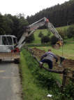 Am 28. und 29.07.2012 hat die Schützenbruderschaft unter tatkräftiger Hilfe vieler Mitglieder Versorgungsleitungen zur Vogelwiese verlegt. Damit sind nun alle vormaligen, provisorischen Maßnahmen zur Ausrichtung des Vogelschiessens überflüssig geworden. Besonderer Dank gilt hierbei Klaus Liese der RWE Meschede und Herrn Werner Funke. Durch die Unterstützung konnten ein Hydrant und ein Stromkasten auf dem Vorplatz gesetzt werden. Der Wasser- und Stromanschluss werden von Ludger Henke bereitgestellt und die Leitungen verlaufen über die Wiese von Michael Krewing. Von nun an kann sowohl die Bedienung der Vogelschiessanlage, als auch die Versorgung des Bierwagens problemlos sichergestellt werden.