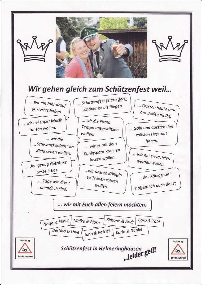 Vielen lieben Dank an unseren super tollen Hofstaat, natürlich an unseren Oberst Siggi Brüggemann mit seinem Vorstand und deren Frauen und an unsere immer verfügbaren Babysitter, denn ohne diese wären Tage wie diese nicht möglich!!!