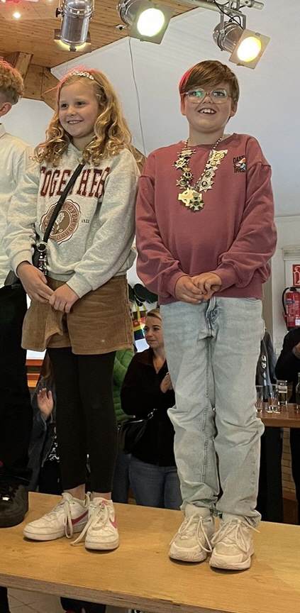 In einem spannenden Wettkampf hat sich beim Kinderschützenfest Pepe Overhageböck die Königswürde gesichert. Mit einem gezielten Wurf holte er den Brotvogel von der Stange. Zur Königin wählte der glückliche Sieger Enie Potthoff.