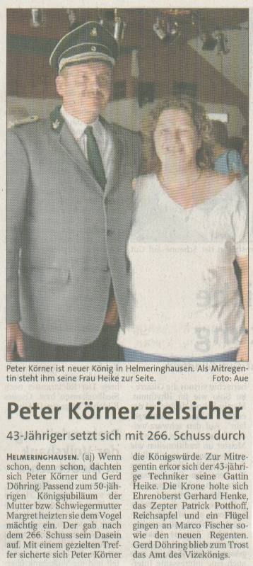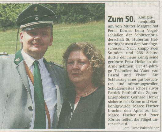 Nach gut 1,5 Stunden und 333 abgegebenen Schuss setzte sich Ludwig Bücker (König 1974/75) gegen 26 andere ehemalige Schützenkönige durch und wurde neuer Kaiser der Schützenbruderschaft St. Hubertus Helmeringhausen.