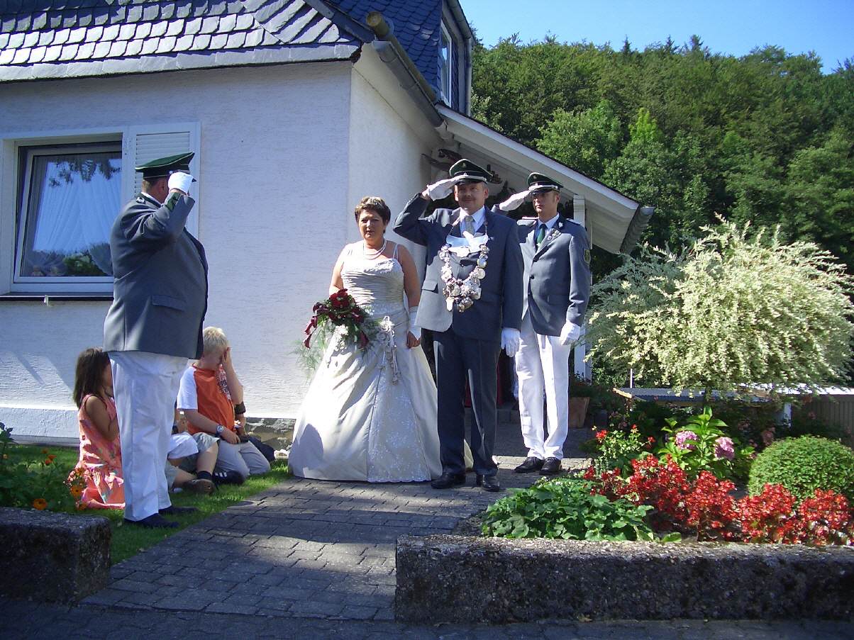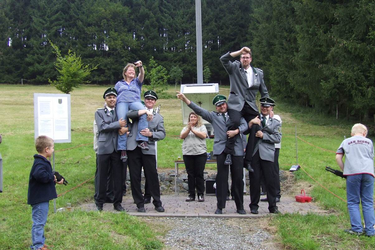 Mit dem 298. Schuss sicherte sich Stephan "Charly" Henke die Königswürde der Schützenbruderschaft St. Hubertus Helmeringhausen. Der Hauptmann der Schützenbruderschaft wählte seine Frau Andrea zur Königin.