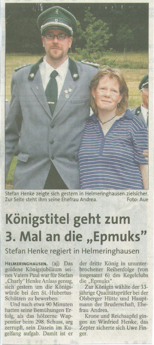 Damit stellt der Kegelclub "Epmups" im Jahr seines zwanzigjährigen Bestehens den dritten König in Folge und den sechsten insgesamt aus seinen Reihen.