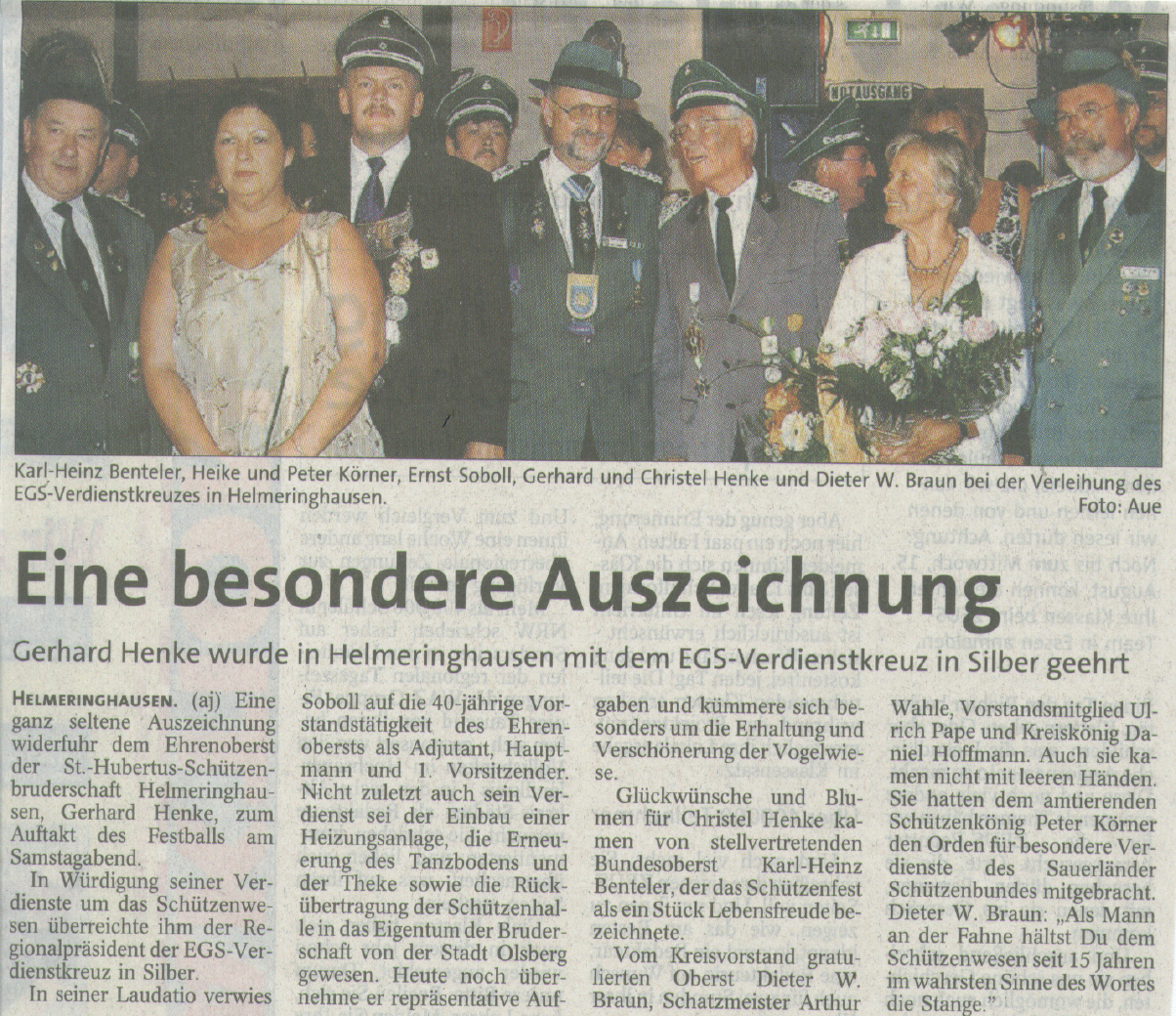 Nach zwölf Jahren als erster Vorsitzender stellte sich Heinz Potthoff nicht mehr zur Wahl. Die Versammlung wählte ihn einstimmig zum Ehrenoberst.